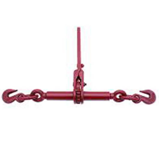 Heavy-duty steel ratchet binder with hook-to-hook ends, built for secure load tightening in rigging and transport applications.